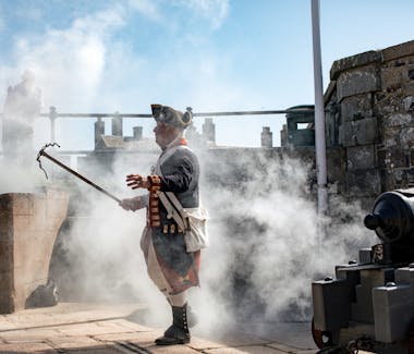 Take in breathtaking views of the French coast as you delve into the network of staircases, towers and secret rooms to discover hidden treasures. Explore the network of staircases, towers and secret rooms to discover gruesome tales and hidden treasures. Learn the story of the Castle through specially commissioned artwork, climb the turrets to find the medieval ‘wheel of urine’, and make your way if you dare into the cellar to study the 'witchcraft' exhibit. High on the battlements, with their commanding view of the surrounding hillsides and distant French coast, stand shoulder to shoulder with wooden soldiers who ‘guard’ the Castle.